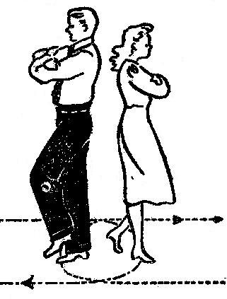 2人が向かい合う。 お互いに前進し、右肩をすれ違い、背中合わせのまま右に進み、左肩をすれ違い後退する。 逆のSee Saw(シー・ソー) はドー・サー・ドーの要領で、左肩をすれ違い、背中合わせのまま左に進み、右肩をすれ違い、後退します。 ☆ ミクサー(パートナー・チェンジ)する場合は左肩をすれ違いのとき、斜め右に後退して一人右側の人の位置に行き、新しいパートナーと向き合う。 |