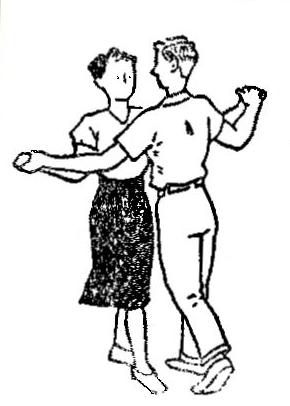 前後または左右の対になった動作をいう。 @ 左足を自由な方向に出し、次に右足を引き揃える。 以上の動作を2呼間で行い、 A 引き続いて右足から行う。 踊っているときに体重が適切に配分されていること。 サイド・バランス(Side Balance) 1. シングル・サークルの例 (両手をつないで、 T-P, W-P, V-P) 右足を少し右横にステップし、その右足に体重をかけ(1)、少し身体全体を右に傾ける(2)、 続いて左に傾ける(3-4)。 2. ダブル・サークルの例 (カップルで向き合い、右手同士を取り合う) 右足からのバランス(右足を1歩前に出し、それに左足を軽く引き寄せる、その左足から1歩後退、右足をクローズ) (前進 ステップ(1)、タッチ(2)、後退 ステップ(3)、タッチ(4) でも行う) 3. ダブル・サークルの例 (カップルで向き合い、バタフライ-P) 2.と同様のステップでLOD側(前進(1-2)右腰接近、後退(3-4)、逆LOD側に行う(前進)(1-2)左腰接近、後退(3-4))(又は逆方向から) (LOD側へステップ(1)、タッチ(2) 逆LOD側ステップ(3)、タッチ(4) でも行う) ☆ 関連用語→ワルツ・バランス (バランス・ステップ:3拍子) | ||